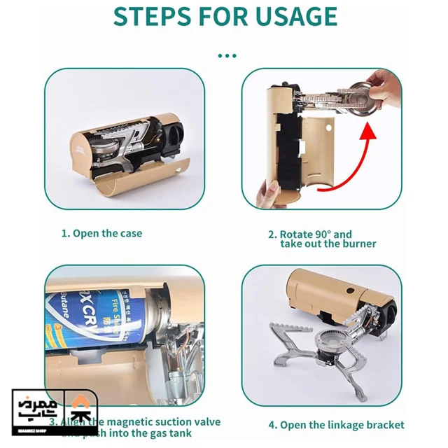این محصول با طراحی تاشو و جمع و جور، به راحتی در کولهپشتی شما جای میگیرد و حمل آن بسیار آسان است. این اجاق گاز از مواد با کیفیت بالا ساخته شده و دارای بدنهای مقاوم و سبک است که در برابر شرایط مختلف آب و هوایی مقاوم میباشد. اجاق گاز کمپینگ ابزاری ضروری و بسیار کارآمد برای هر فردی است که زمان زیادی را در طبیعت سپری میکند و نیاز به وسیلهای برای پخت و پز یا گرم کردن غذا و نوشیدنیها دارد.