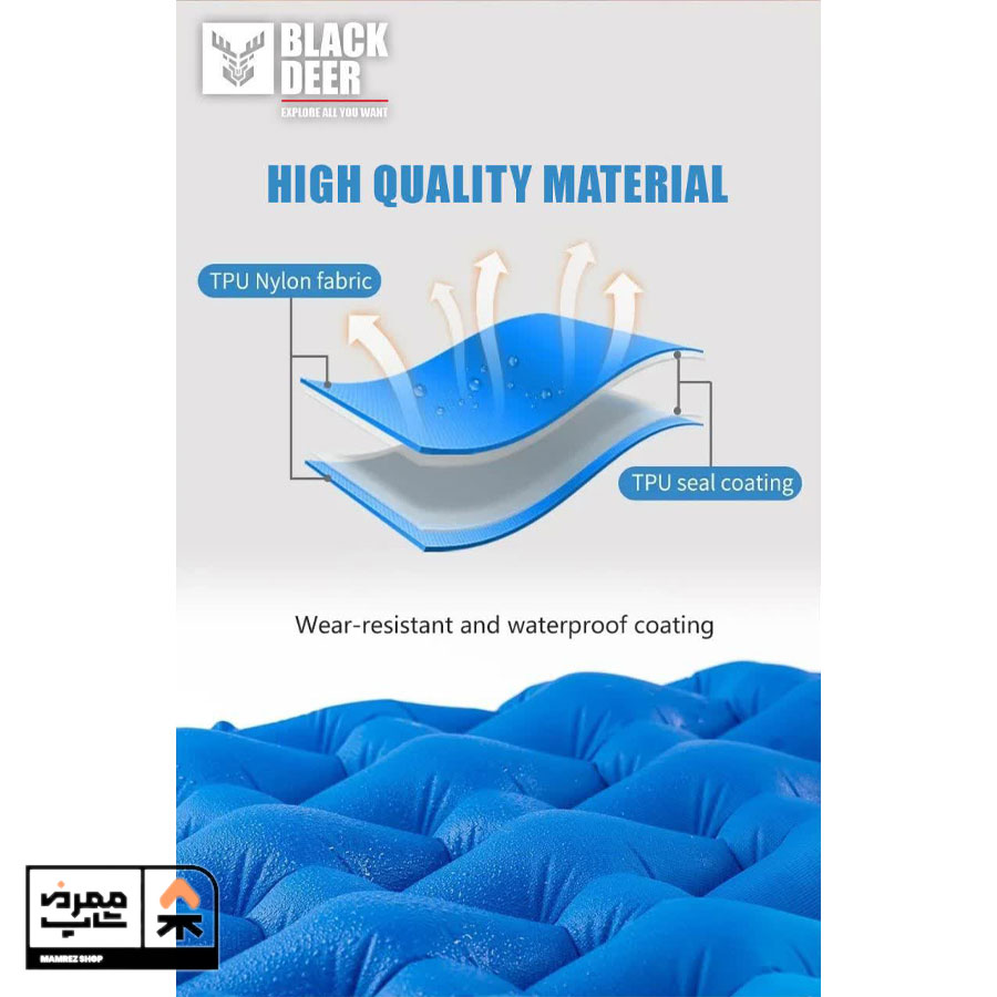 زیرانداز بادی بلک دیر BAP-550 ترکیبی عالی از کیفیت و راحتی را ارائه میدهد که ساخته شده از مواد منعطف اما مقاوم است. زیرانداز بادی بلک دیر BAP-550 نه تنها بافتی نرم دارد که احساس راحتی روی آن بسیار دلپذیر است، بلکه در برابر سایش و رطوبت به خوبی مقاوم است. بنابراین می تواند سال ها همراه شما در کمپینگ و طبیعت گردی باشد.