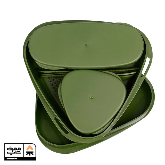ابعاد ظرف مثلثی در این ست 18×4.5 سانتیمتر است و ابعاد تخته 13 سانتیمتر است. همچنین، ابعاد ظرف مثلثی کوچک در این ست 10×3.5 سانتیمتر و ابعاد ظرف بیضی 17×5 سانتیمتر است. قاشق و چنگال کارد نیز با ابعاد 15 سانتیمتر در این ست قرار دارند. تعداد کلی تکهها در این ست شامل ظرف مثلثی با درب، ظرف مثلثی کوچک، ظرف مثلی بیضی، تخته، ست قاشق چنگال کارد است.