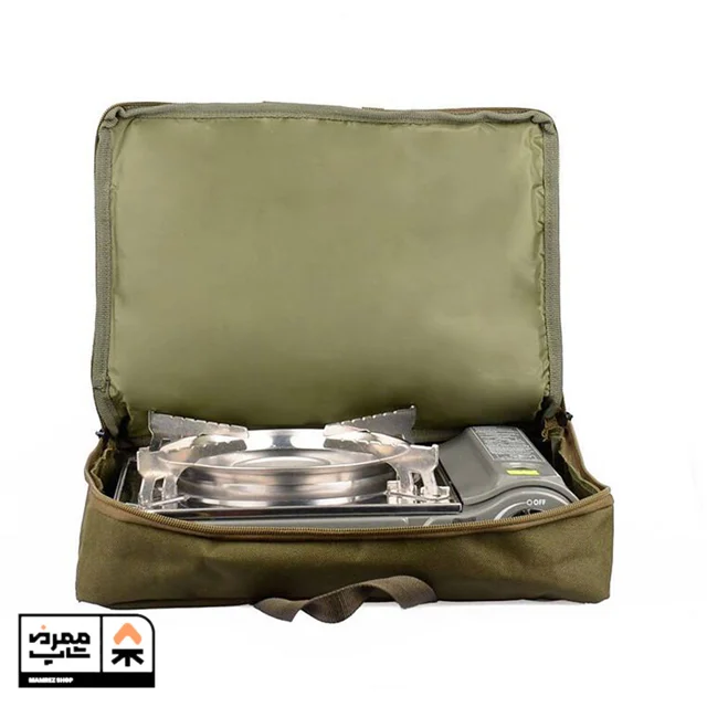 کیف اجاق سفری پرتابل با داشتن سایز استاندارد مناسب تقریبا تمامی اجاق گاز سفری های پرتابل بازار میباشد همچنین استفاده از پارچه جودون ، زیپ درشت و با کیفیت دوطرفه ، دسته ی تسمه ای با مقاومت بالا، و داشتن لایه ی ضربه گیر این محصول را بسیار کاربردی و با کیفیت کرده است.